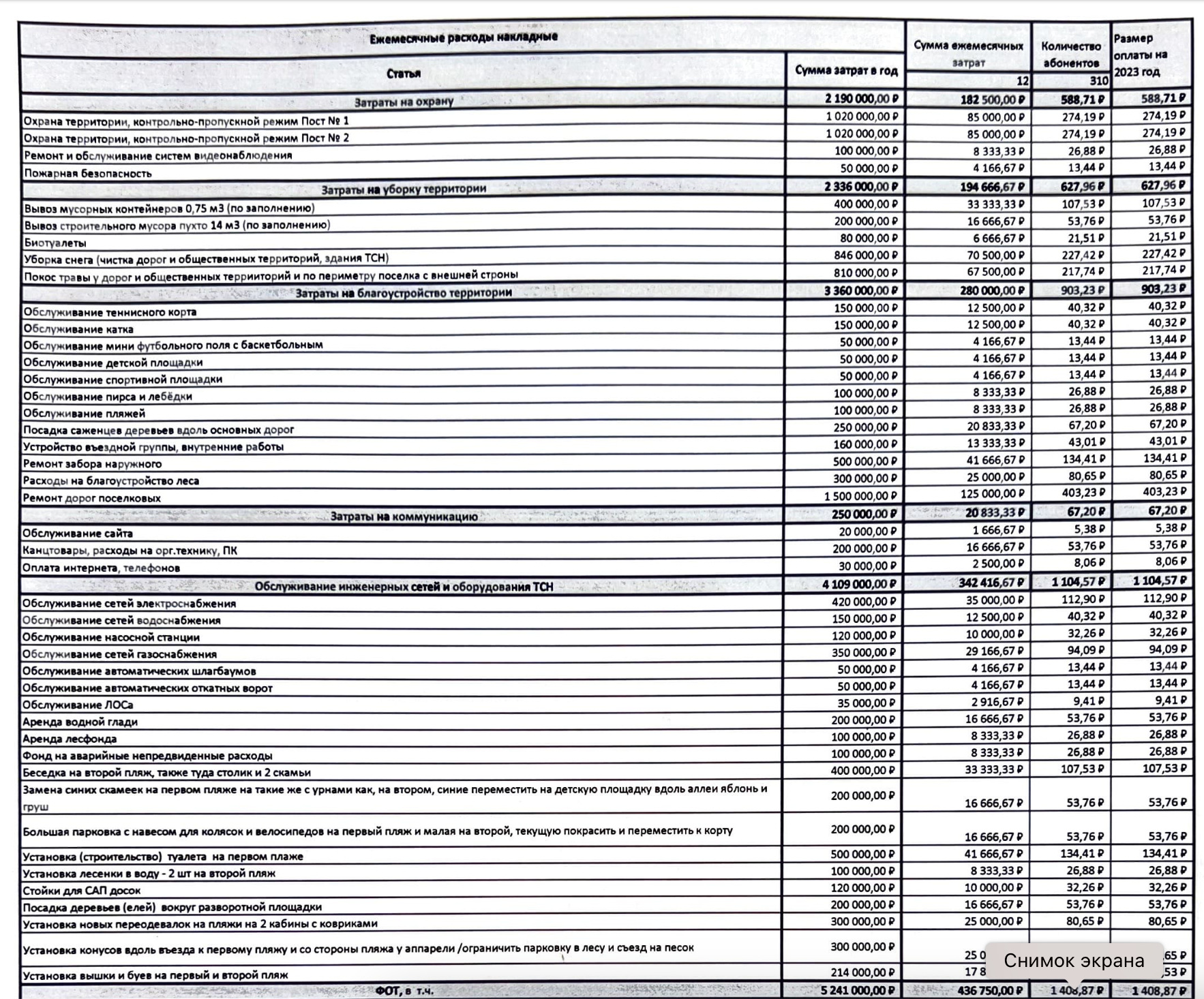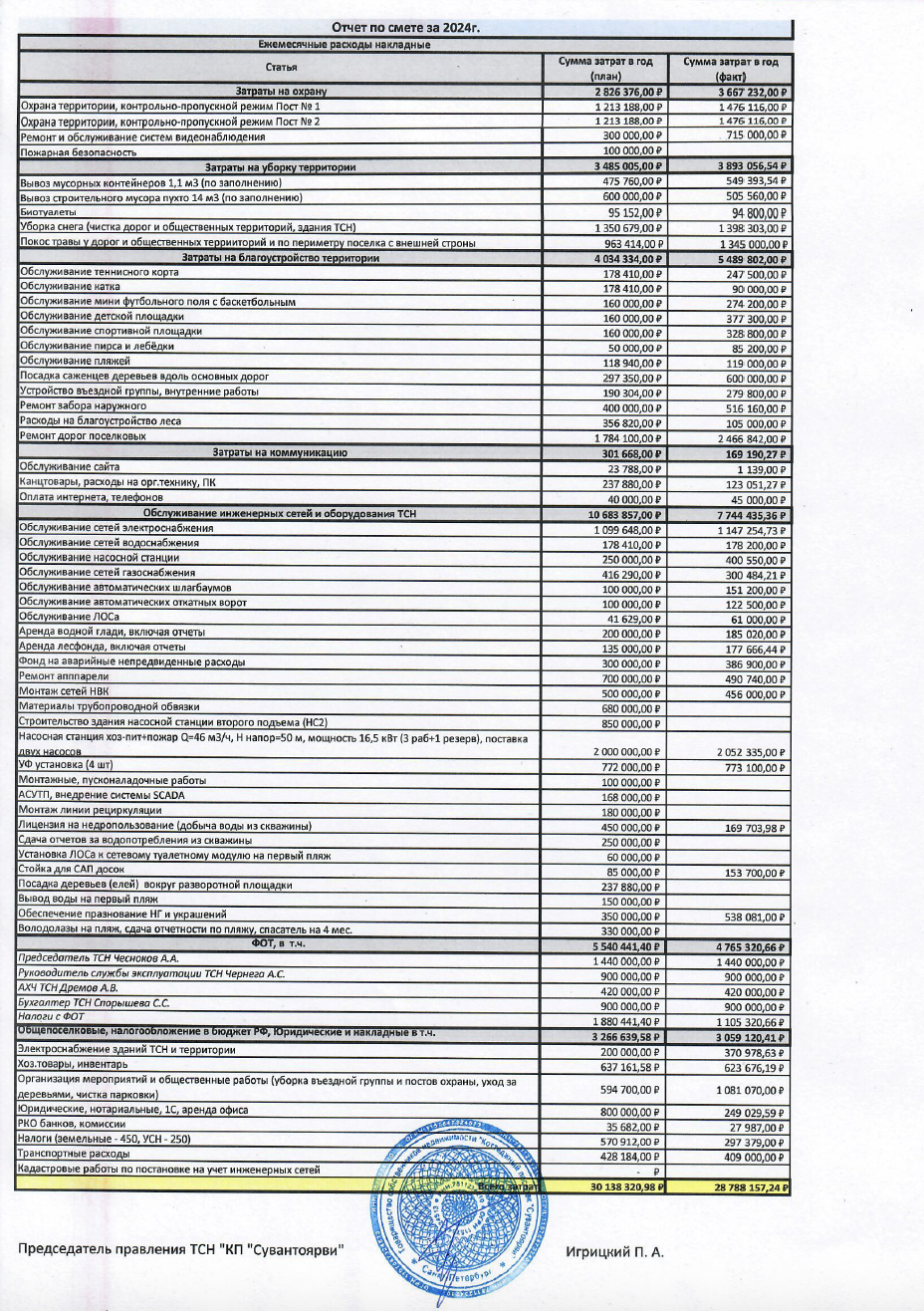 Отчет расходов ТСН "КП "Сувантоярви" за 2022 год