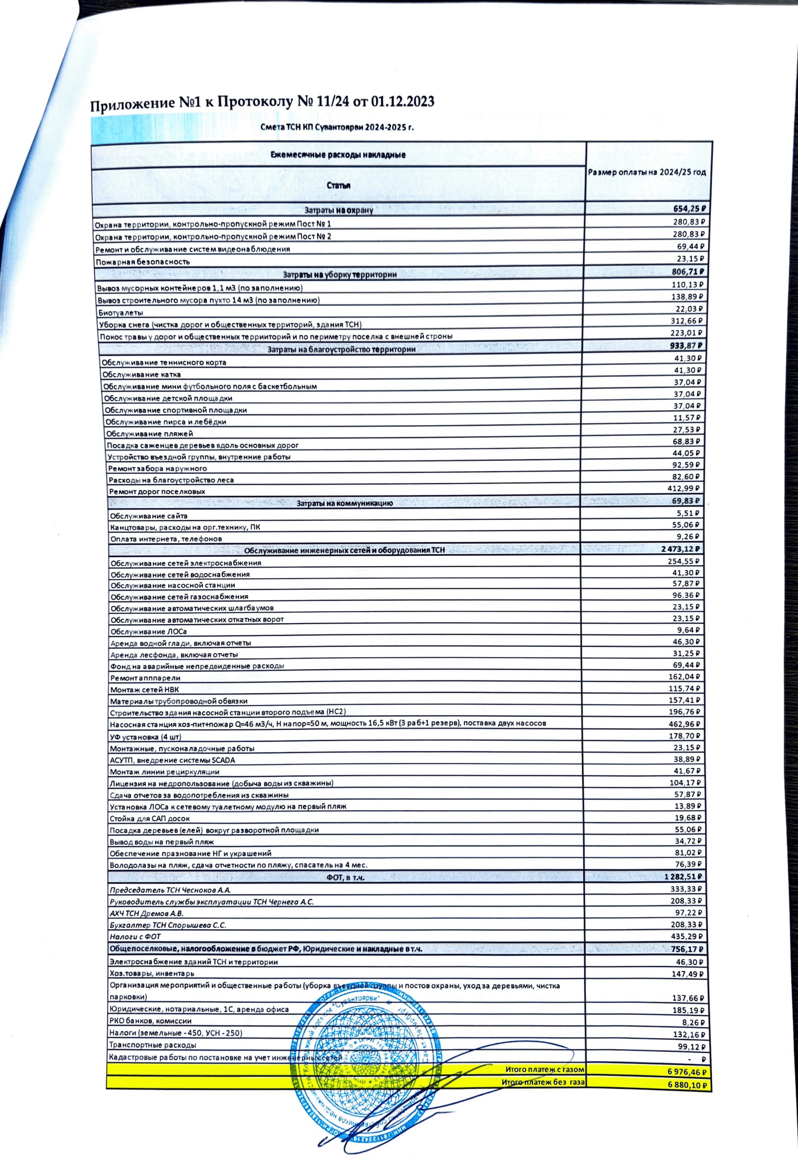 Протокол 11/25 от 01.12.2023 о принятии сметы на 24/25 года