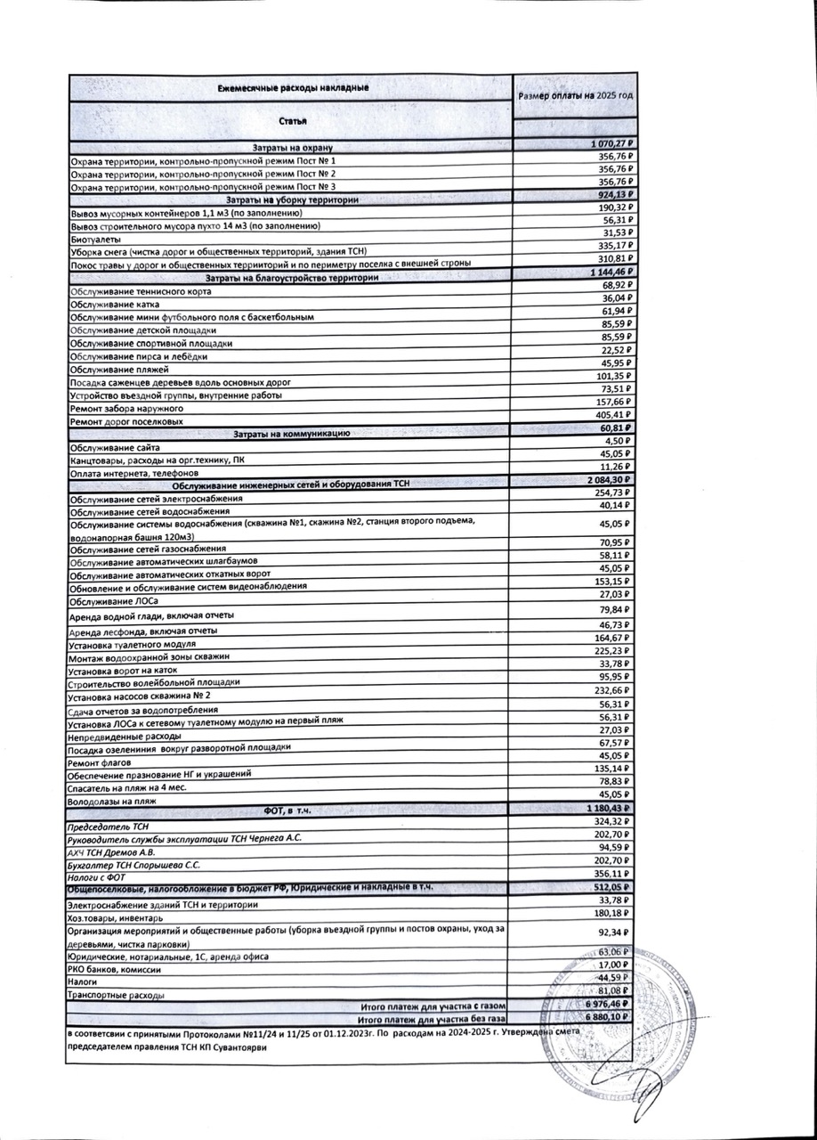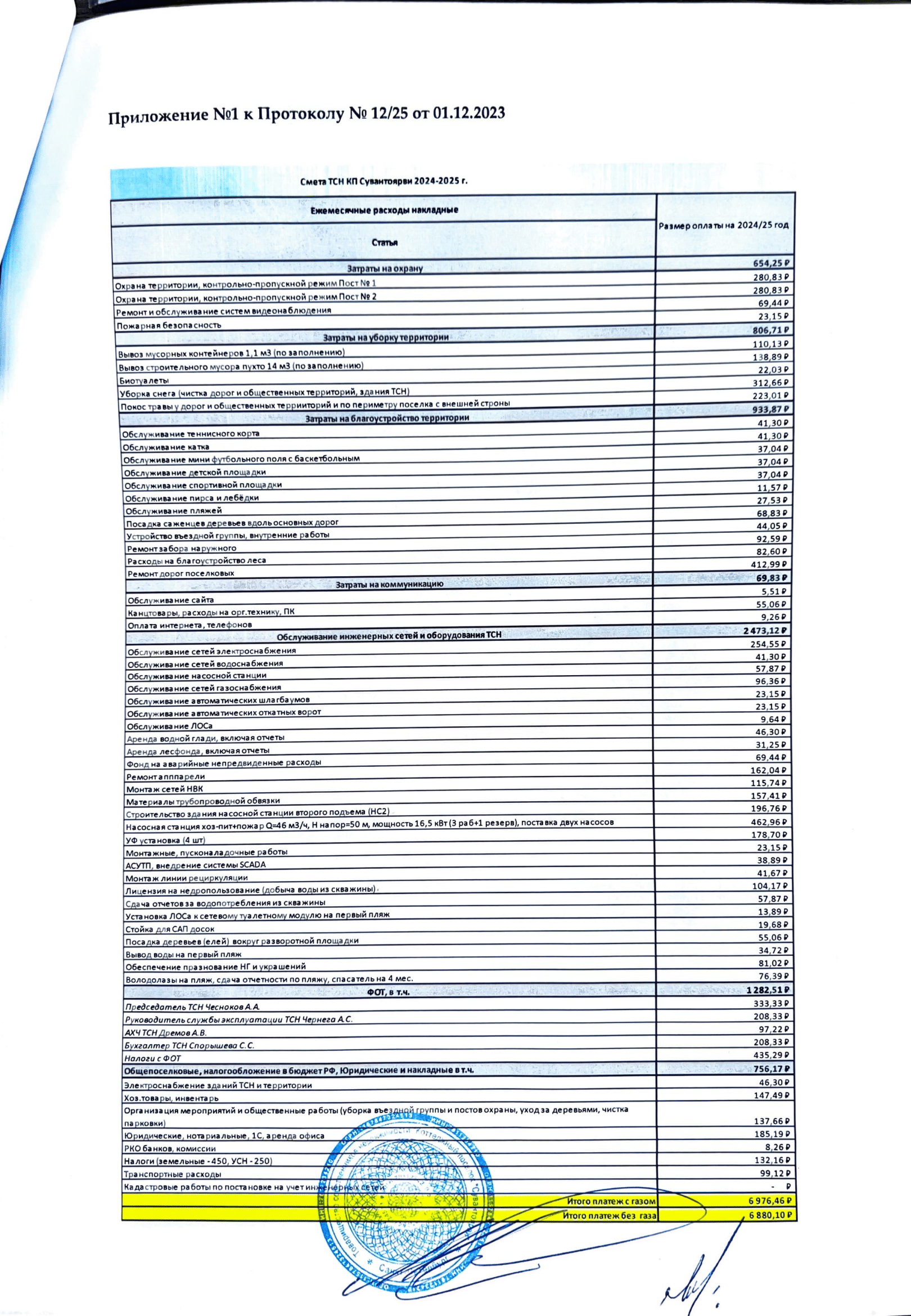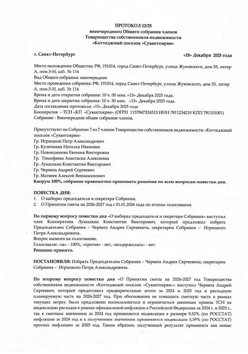 Протокол 12/25 от 15.12.2025 года о принятии сметы на 2026-2027 год